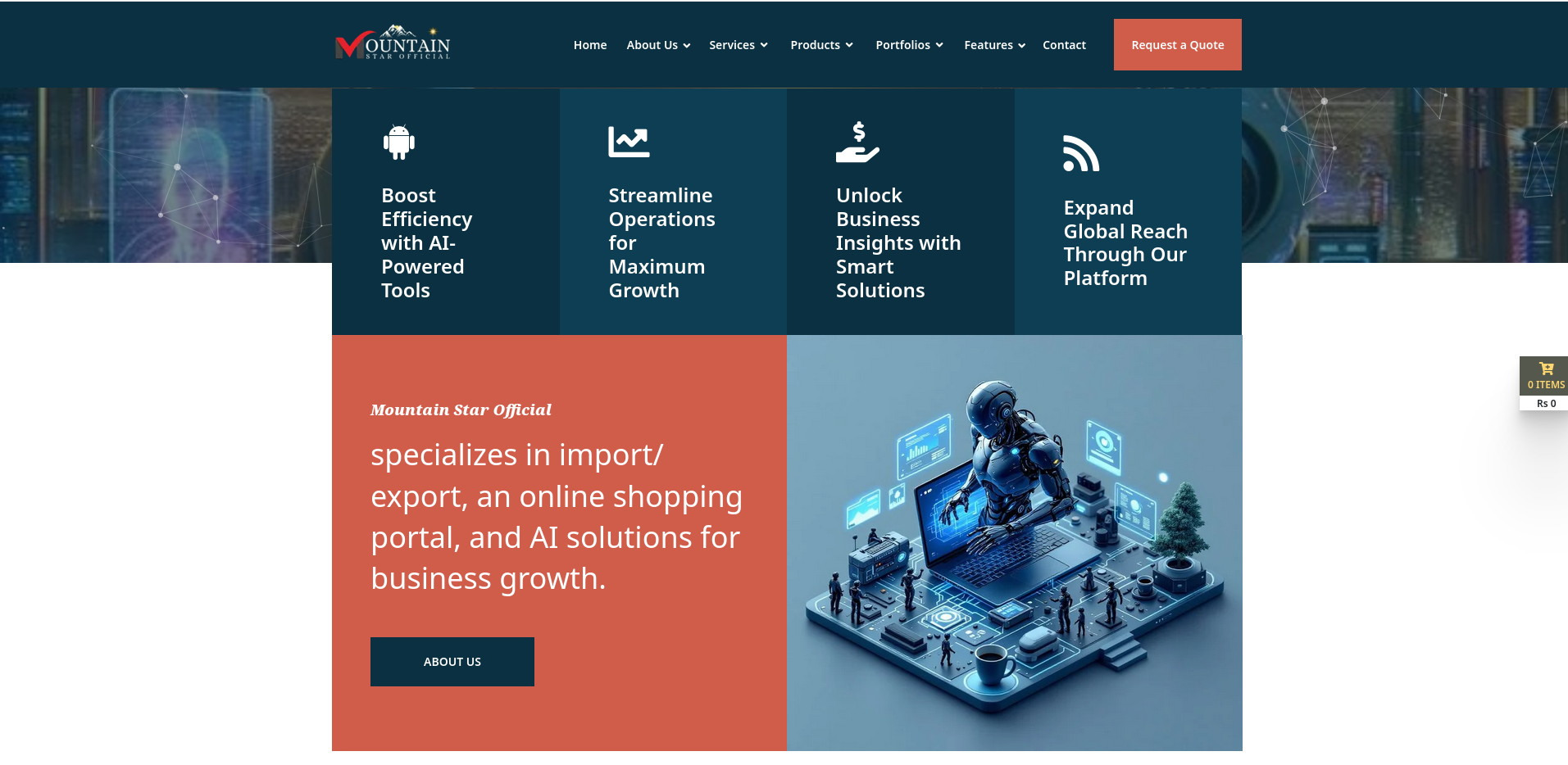 Mountain Star Official Private Limited is a premier provider of cutting-edge AI business solutions, e-commerce platforms, multivendor solutions, and import-export services. Our goal is to revolutionize the way businesses connect, operate, and grow. With a wide array of services designed to enhance productivity, streamline operations, and increase global reach, we are your trusted partner in navigating the digital marketplace and international trade.